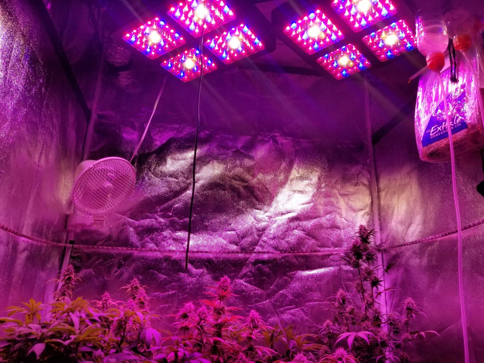 4x4 yintatech pos wovenblack and mylar lined/ ACInfinity T4 sock no filter im a ferk/ 2x Growstar CRI COB EPI LED combos 1200w 250w true chinese piecers they work tho / vivo clip 6" fan, floor fan on a pully too/ 55-68% RH 23-32c when it is calculated vpd was looking like 1.0-0.72 i dont get that at lights out o.O