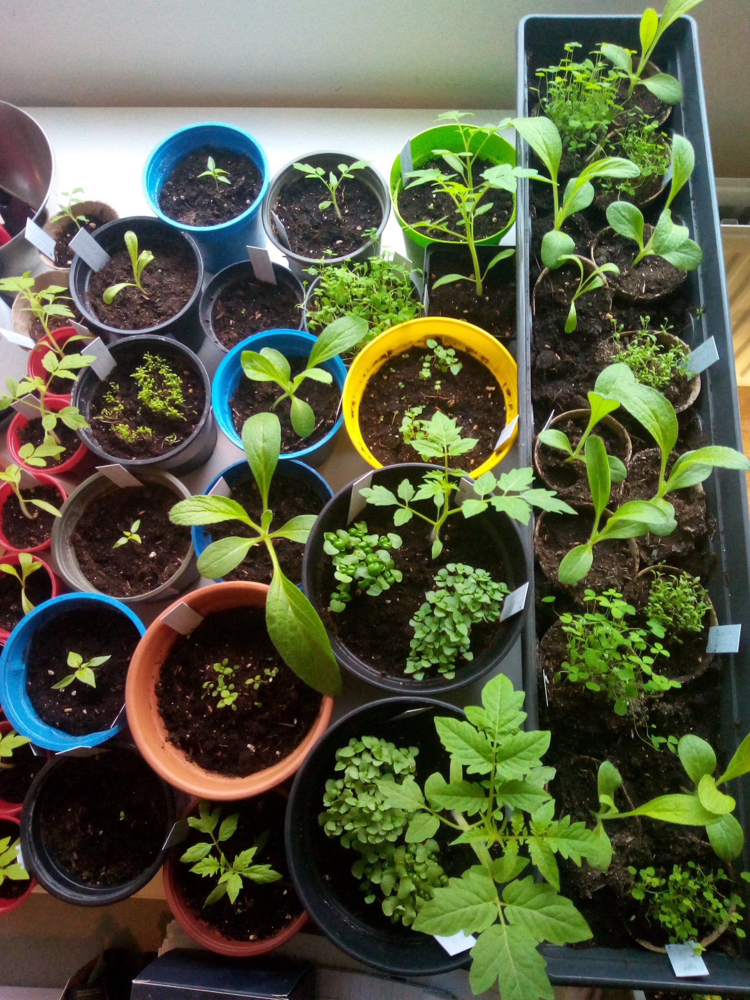 When they were a few weeks old I transferred the strongest 3 in to their own larger plastic pots with most other things.