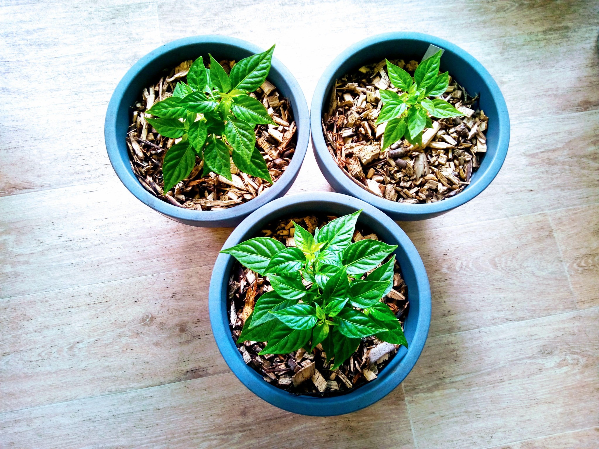 Put them in to their final homes now with a wood chip mulch layer in my best effort at a healthy living soil.
