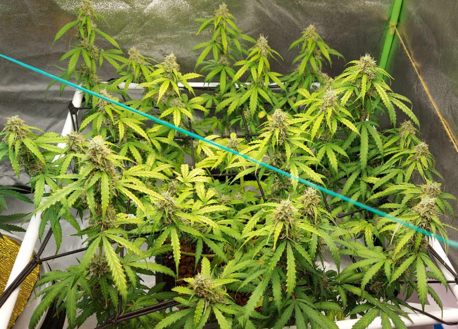 50cm x 50cm scrog used a solid pot as my airpots were in use 25ltr coco/clay , under 275 watt par plus 5" extraction