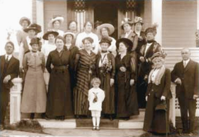 Mrs. Nellie McClung (Stipes, centre), Mrs. Pankhurst (British, at her left), Emily Murphy - Edmonton (1916)